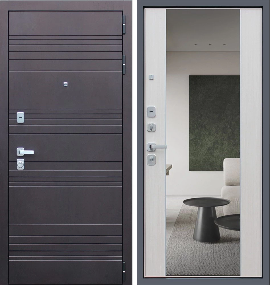 Надежная входная Дверь Дуэт с зеркалом премиум класса по цене 46 997 руб. Большая толщина стали защитит от проникновения в ваш дом, квартиру или коттедж. Используется очень качественная фурнитура: замки, цилиндры, ручки, защелки. Покрытие и отделка двери изготовлено под внимательным контролем производителя. Дверь имеет долгий срок службы и гарантию.